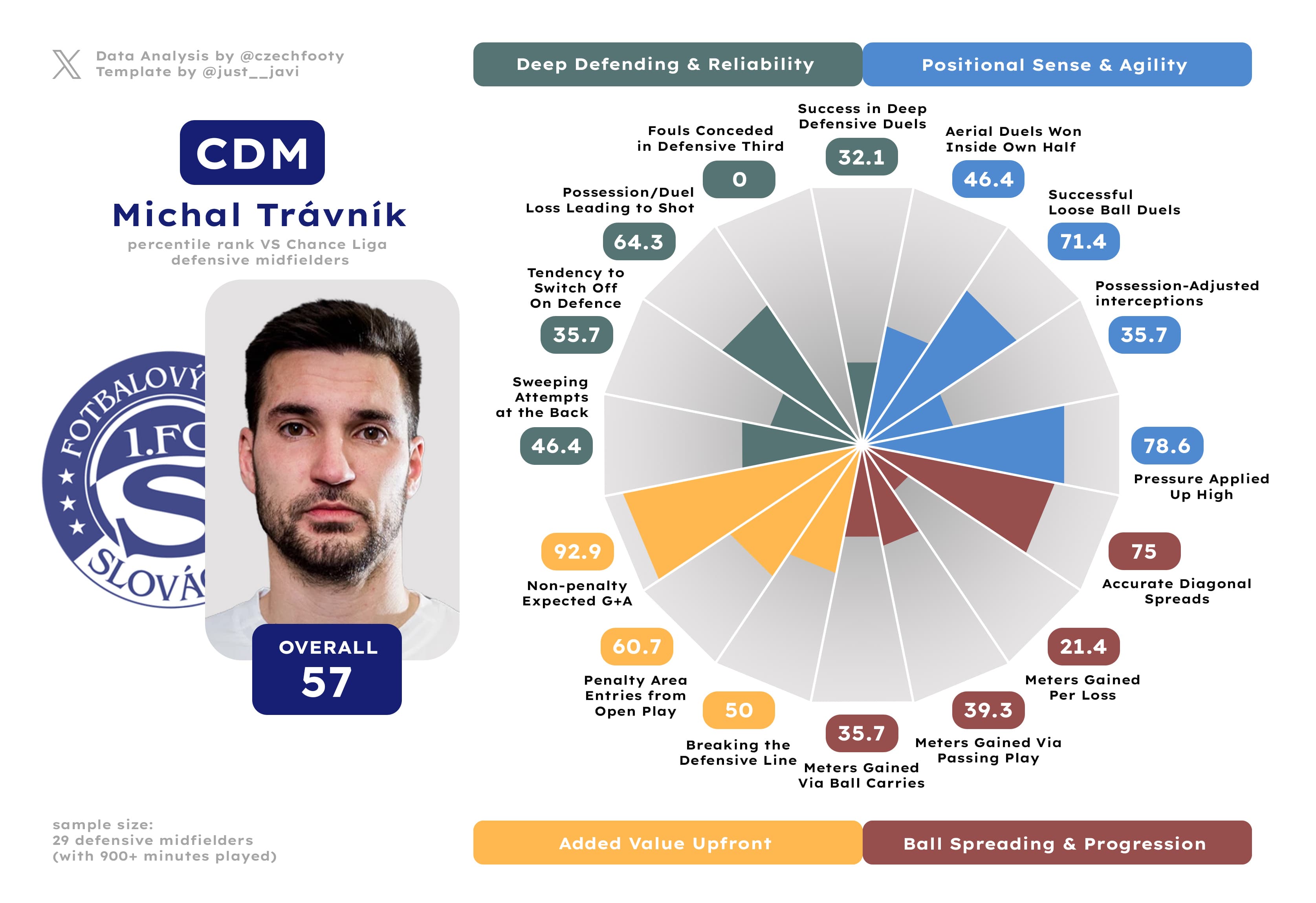 Per my positional models (advanced stats): Michal Trávník (57th overall percentile at CDM)