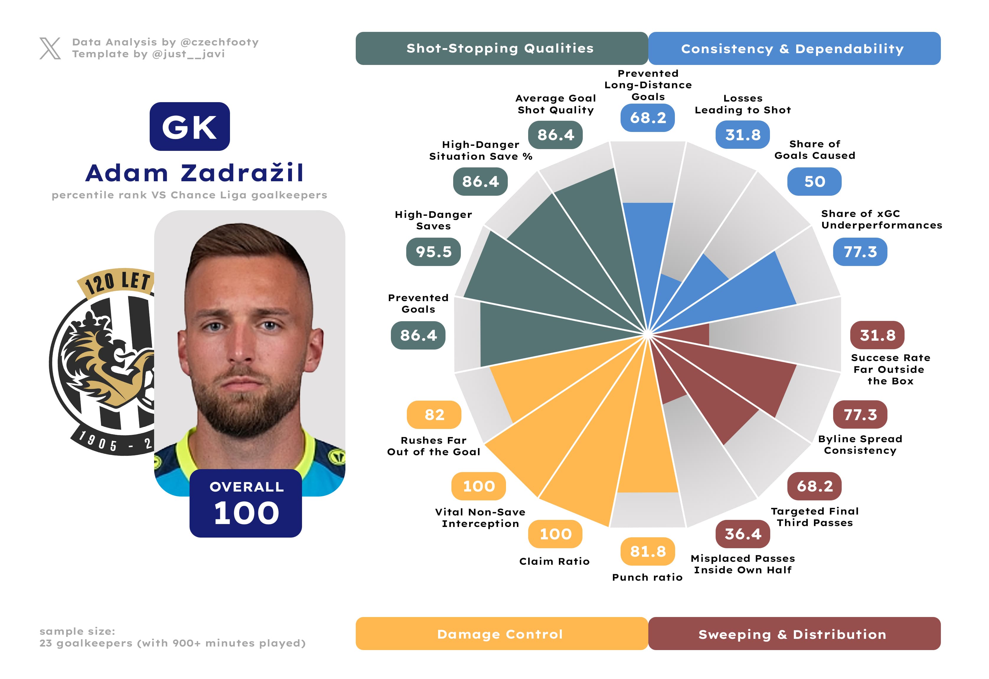 Per my positional models (advanced stats): Adam Zadražil (100th overall percentile at GK)