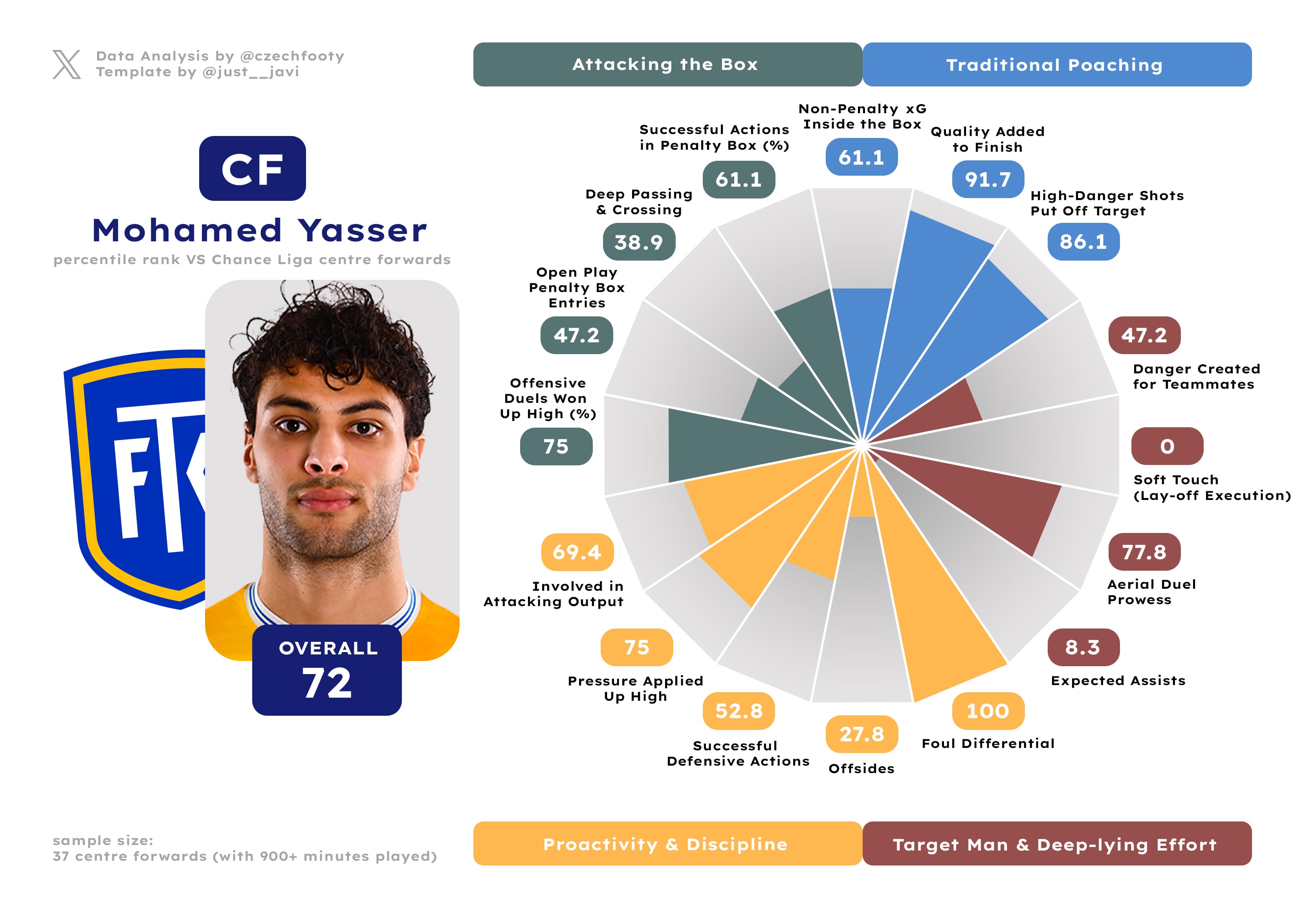 Let’s stay on the matter of the propped up attacking department. We’ve already been over Gning’s near-singular qualities as part of the Karviná preview, but honestly, Mohamed Yasser could make for an even bigger blow. He was obviously massive for Teplice aerially, which none of the arrivals is compensating for, and generally made for a complex presence in/around the attacking box — winning the ground duels to enter or preserve possession, putting enough power behind his shots, not missing the target all that often. It’s hard to cry over this full a package leaving, when his lifestyle (something Frťala himself alluded to) and a vicious cycle of knocks suffered between the individual matchdays meant you could’ve started him in just 11 games; but it’s not hard to recognize Yasser was still immensely useful.