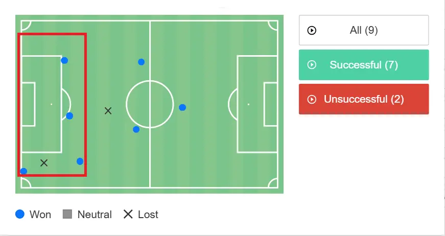 As opposed to fullbacks, I am going with the success rate here to complement the aerial and ground duel success rates, to ultimately paint a full(ish) picture of one centre half's duel acumen.