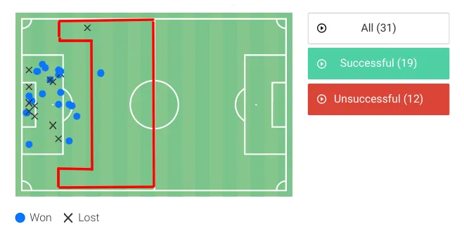 Source: Wyscout.hudl.com / manually tracked (1-on-1 situations)
